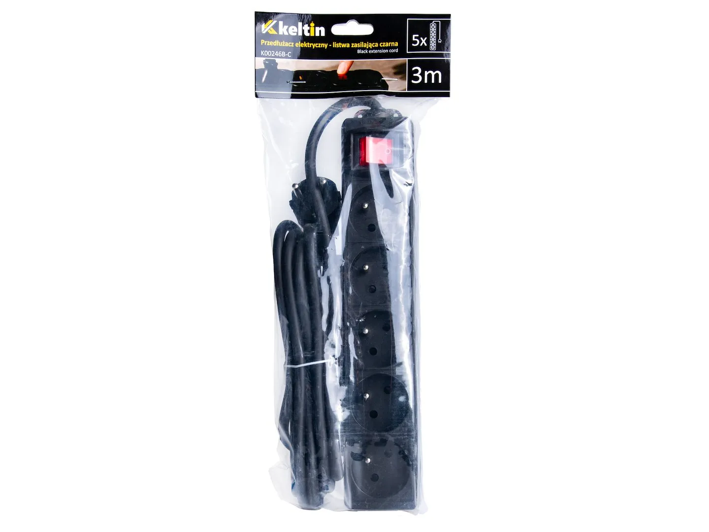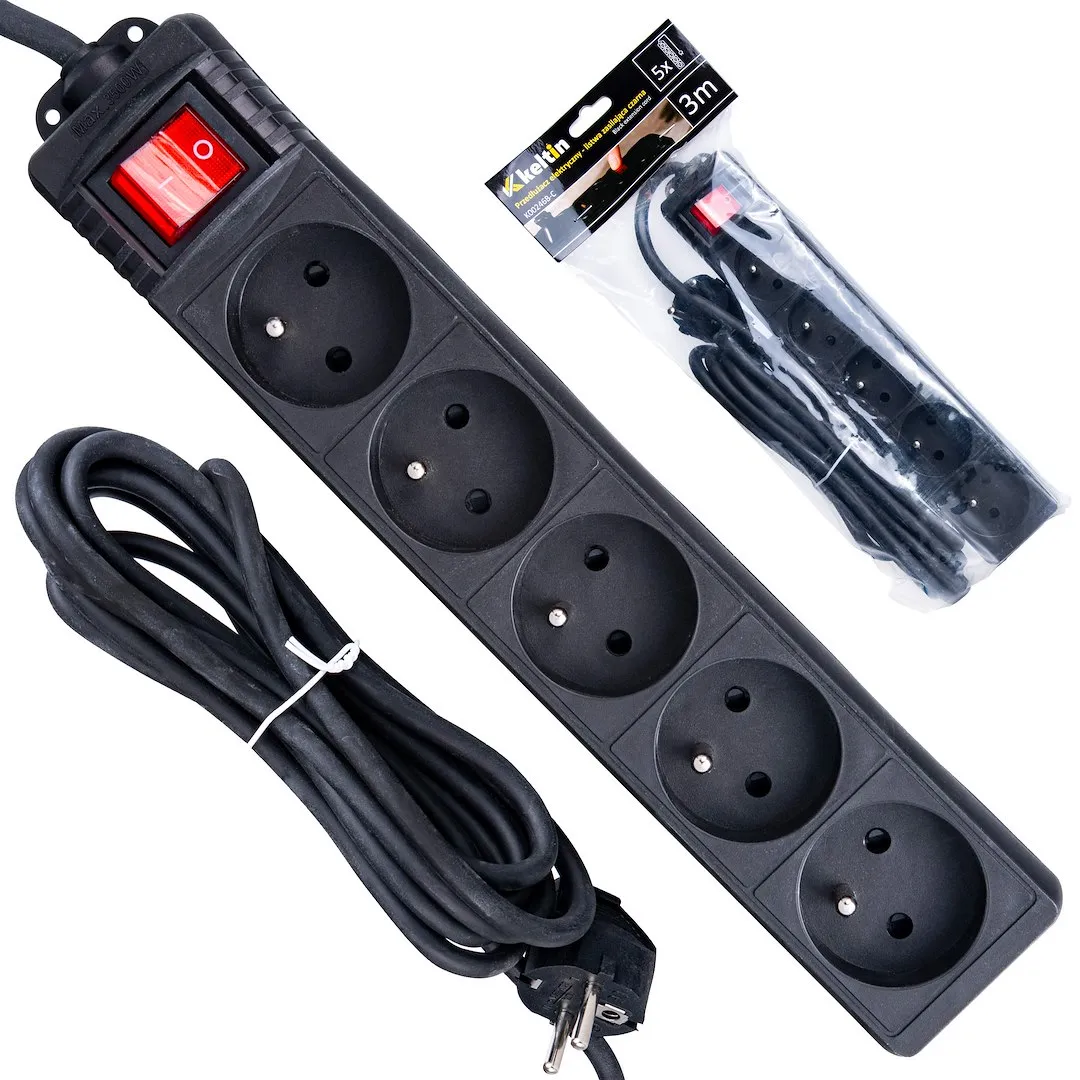 Elektromos hosszabbítókábel – fekete konnektor 5 aljzat 3m (40)