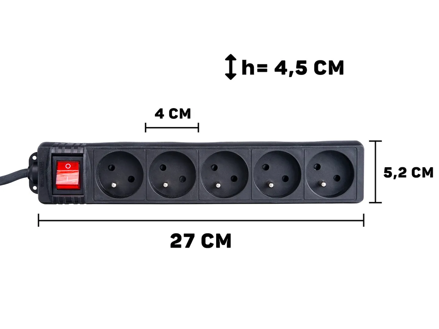 Elektromos hosszabbítókábel – fekete konnektor 5 aljzat 5m (40)