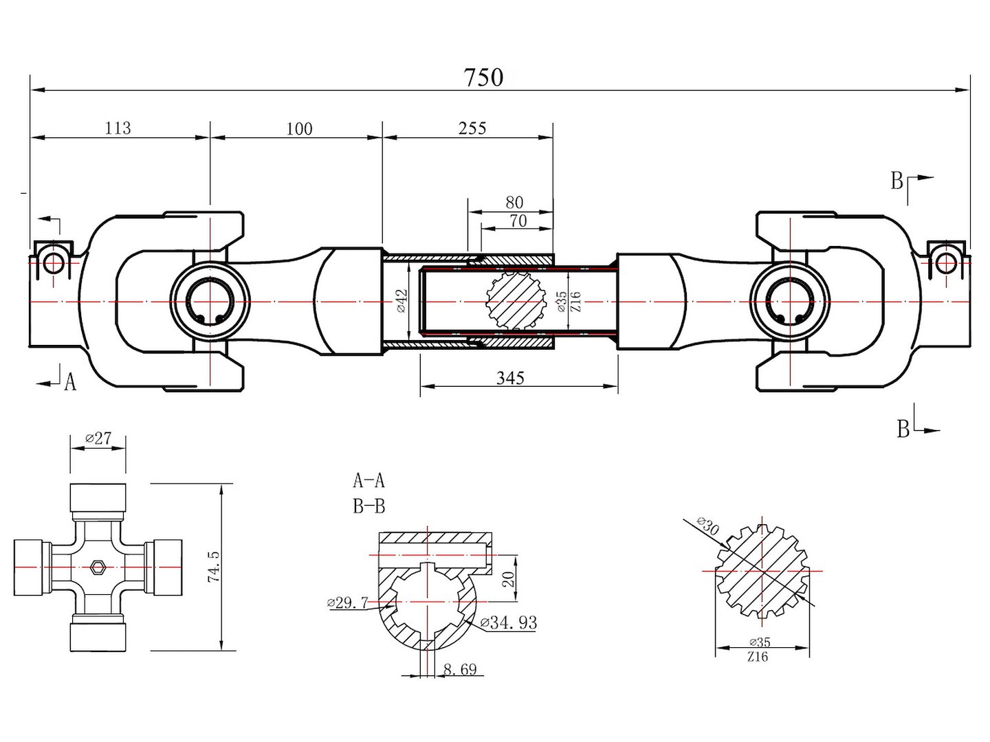 Kardántengely 75cm