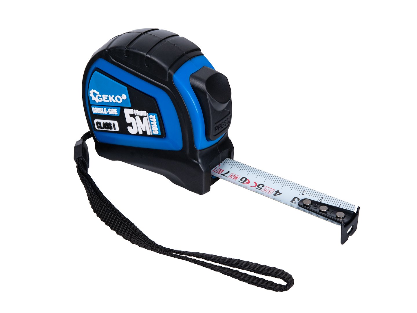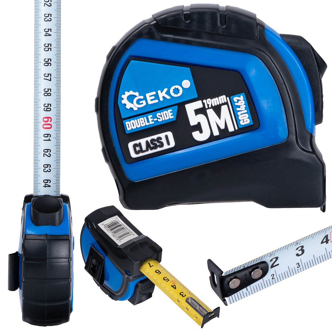 Tekercselt kétoldalas nylon mérőszalag 5m/19mm CLASS I – display karton (12/120)